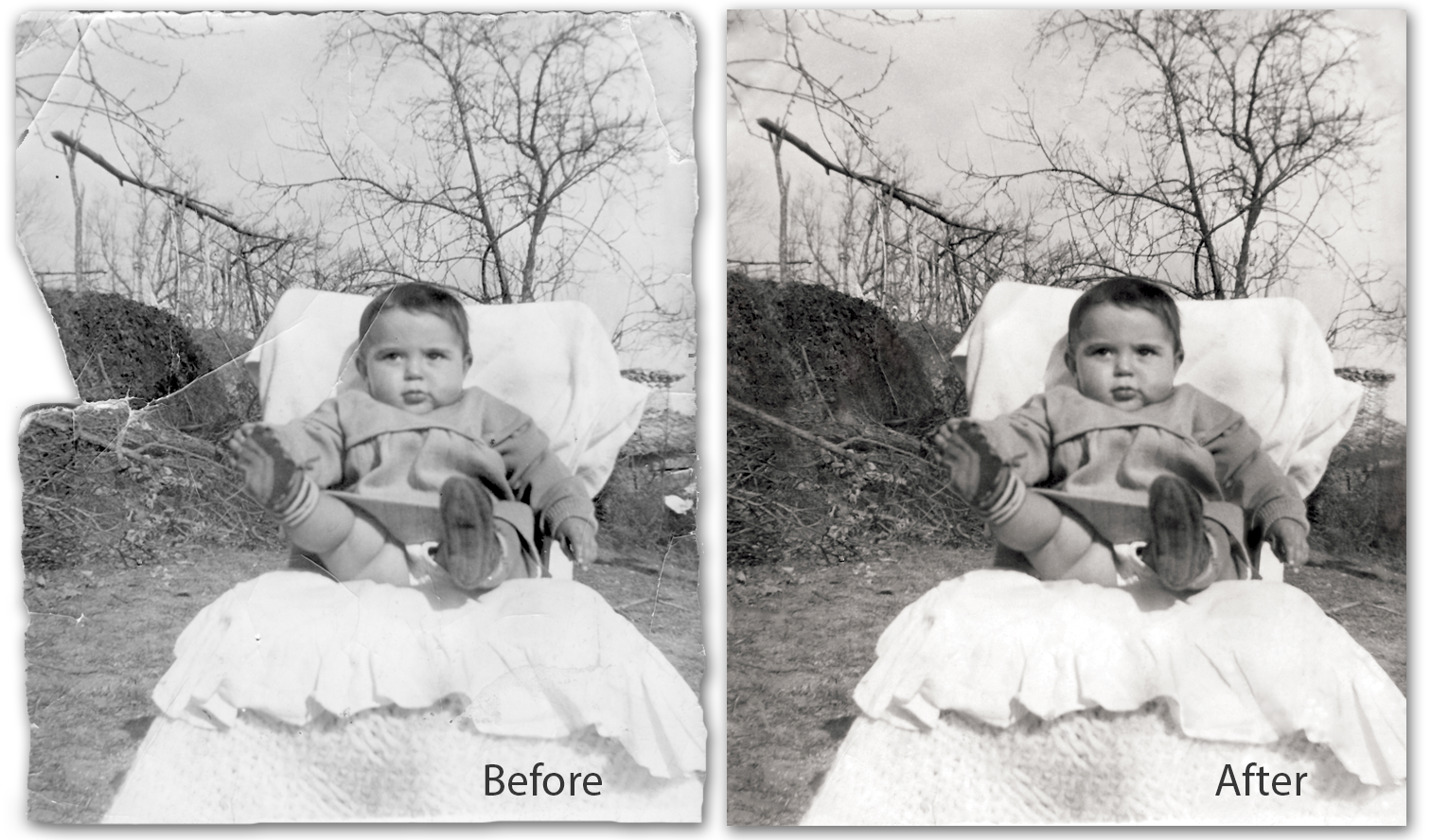 I specialize in restoring aged, damaged, or faded photos and carefully enhancing them for modern use. Whether your image lives in a shoebox, an album, or a frame on the wall, I treat every photo with patience, respect, and attention to detail.